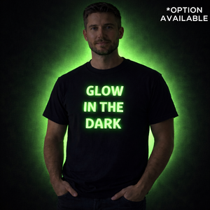 The print transfer is available in a range of colours to match your aesthetic. For after-dark impact, choose our exclusive glow-in-the-dark option — ideal for clubs, cruising spaces, play parties, and dark rooms where your statement deserves to be seen.