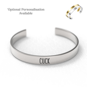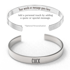 A single cuck cuff bracelet, made from high quality materials and comes with the option to personalise the inside of the bracelet for a personal touch.