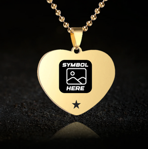 A custom heart shaped necklace, allowing you to add an emblem/symbol of your choice. Optional personalisation also available to the back of the pendant.