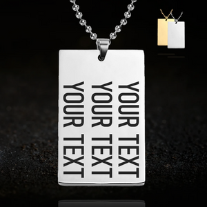 A custom large rectangle necklace, allowing you to add up to three rows of vertical text to the front as well as optionally to the back.