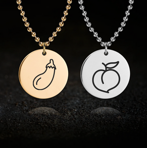 Fun Peach and Aubergine Emoji Couples Necklace Set