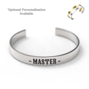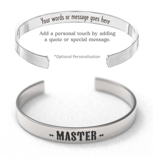 A single master cuff bracelet, made from high quality materials and comes with the option to personalise the inside of the bracelet for a personal touch.