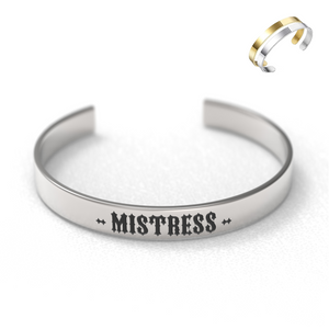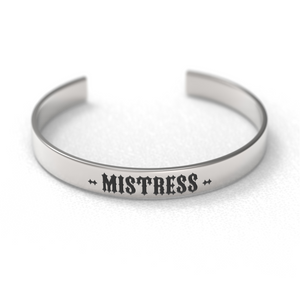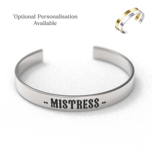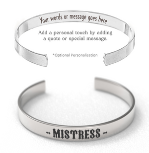 A single mistress cuff bracelet, made from high quality materials and comes with the option to personalise the inside of the bracelet for a personal touch.