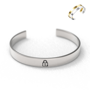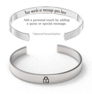 A single padlock cuff bracelet, made from high quality materials and comes with the option to personalise the inside of the bracelet for a personal touch.