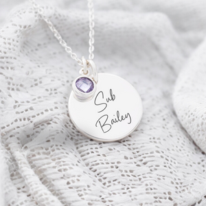 A personalised birth stone necklace which allows you to add a moniker, name or pseudo personality such as your mistress or sub name! An elegant necklace adding a splash of kink!
