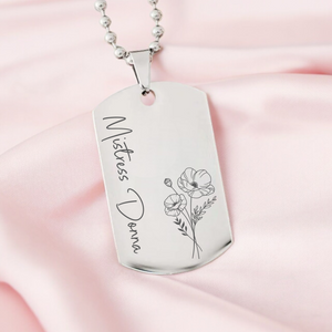 Personalised Hybrid, Birth Flower Dog Tag Necklace