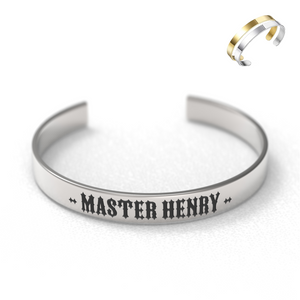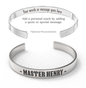 A personalised master cuff bracelet, made from high quality materials and comes complete with a personalised name of your choice.