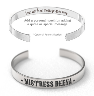 A personalised mistress cuff bracelet, made from high quality materials and comes complete with a personalised name of your choice.