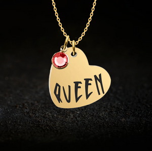 Dominant BDSM Queen Heart Necklace, Optional Birthstone