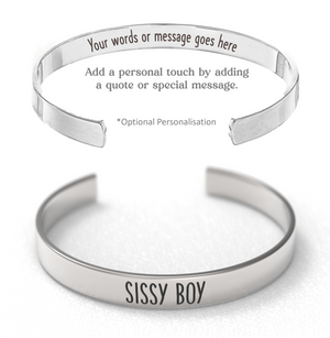 A single sissy boy cuff bracelet, made from high quality materials and comes with the option to personalise the inside of the bracelet for a personal touch.