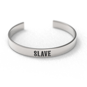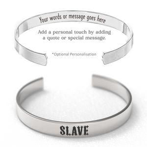 A single slave cuff bracelet, made from high quality materials and comes with the option to personalise the inside of the bracelet for a personal touch.