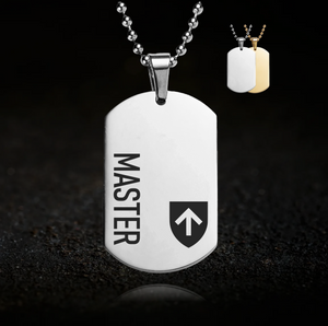 The pendant is shown with the word 'MASTER' however you can have custom text of your choice, please enter the text you would like in the personalisation box provided.